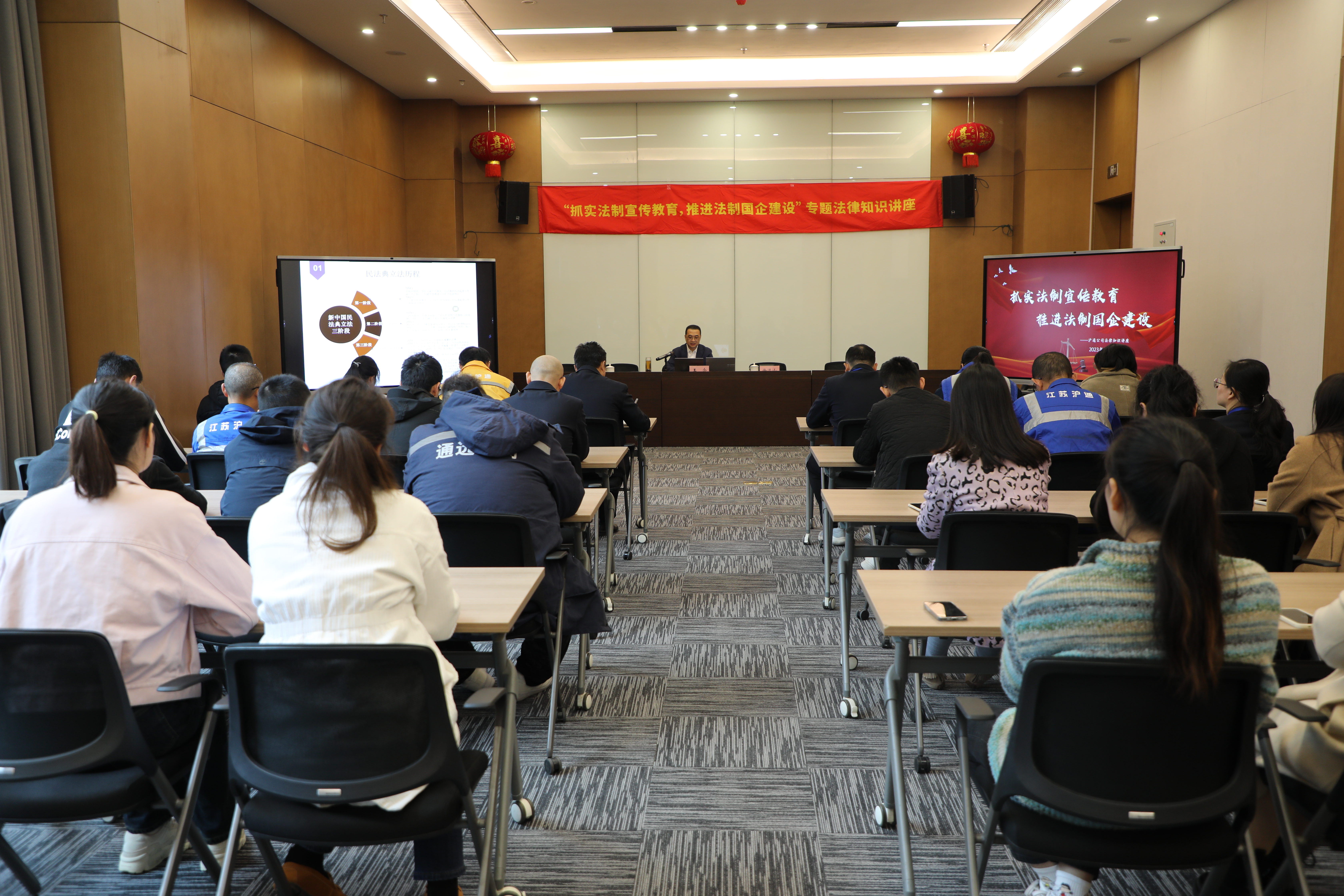 為深入學(xué)習(xí)貫徹習(xí)近平法治思想,推動(dòng)企業(yè)法治文化建設(shè)。11月16日上午,滬通公司組織開展“抓實(shí)法制宣傳教育,推進(jìn)法制國企建設(shè)”法律知識(shí)專題講座活動(dòng)。公司全體黨員、團(tuán)員青年、各部門職工代表等近40人參加活動(dòng)。